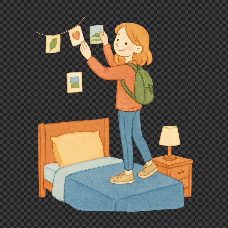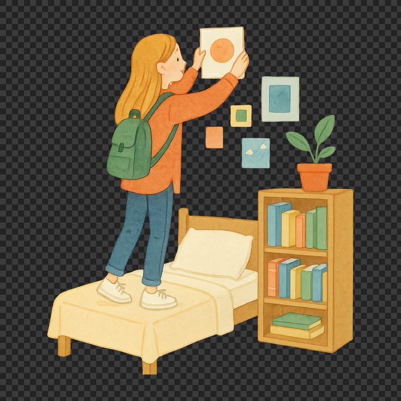 PNG Student decorating cozy dorm room. https://www.rawpixel.com/image/19206419/png-student-decorating-cozy-dorm-roomView license