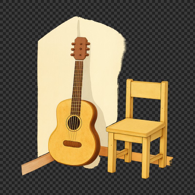 PNG Guitar beside wooden chair. https://www.rawpixel.com/image/19006641/png-guitar-beside-wooden-chairView license