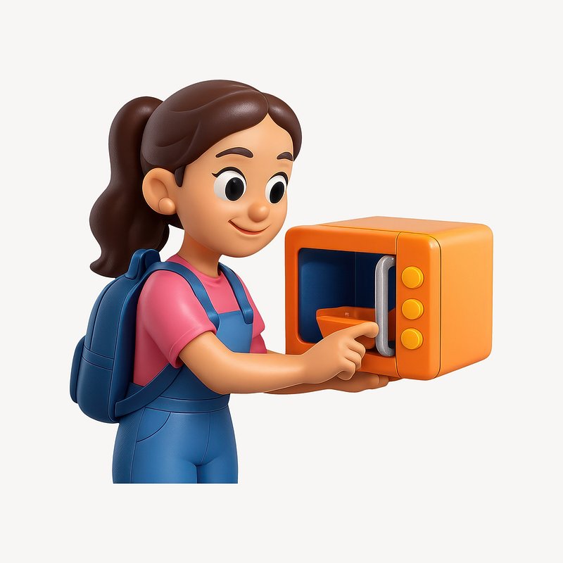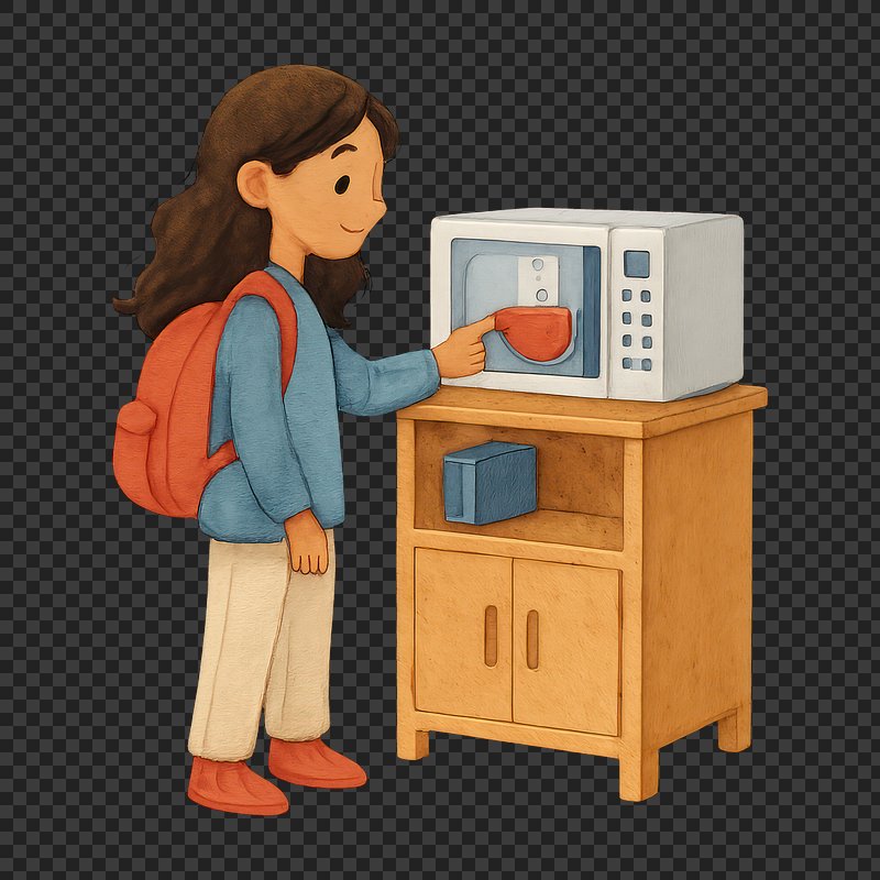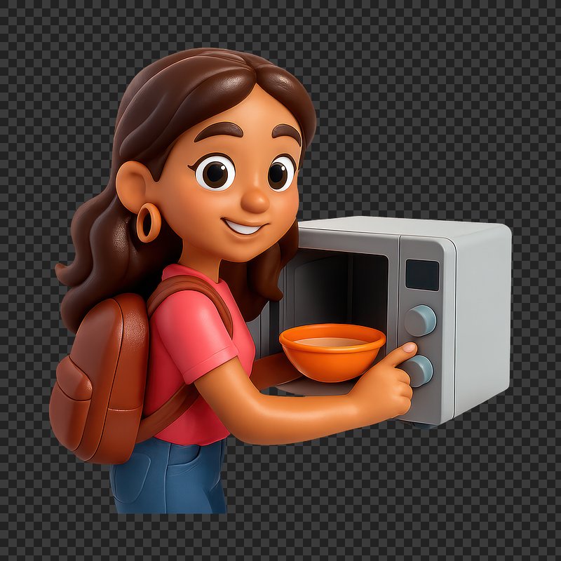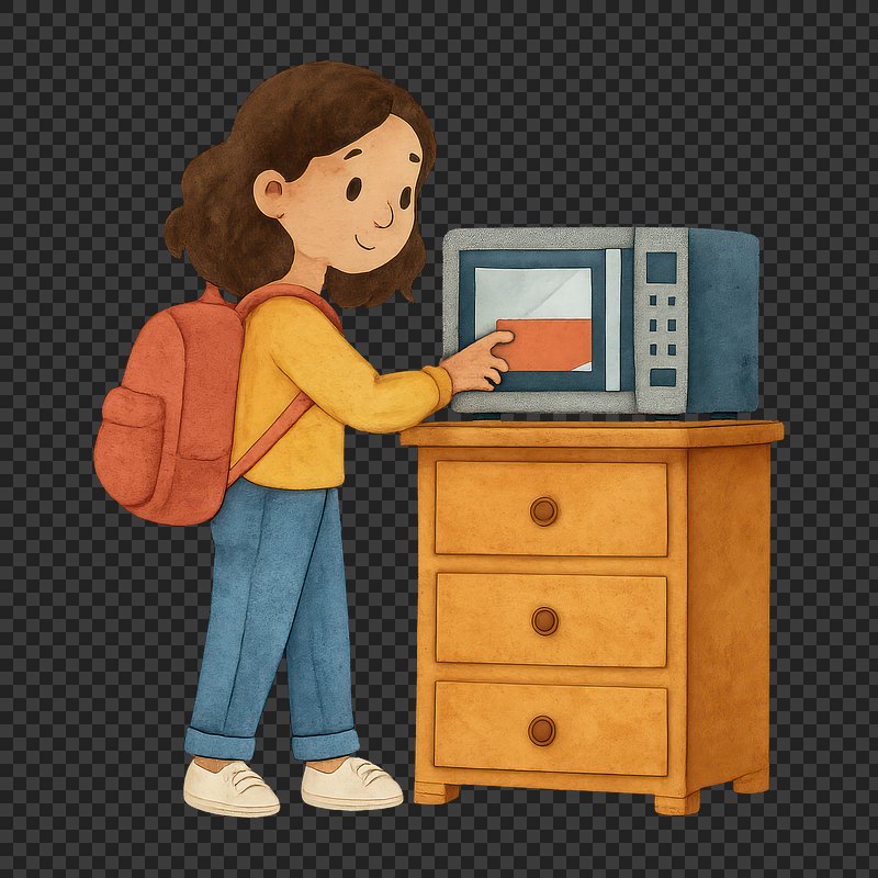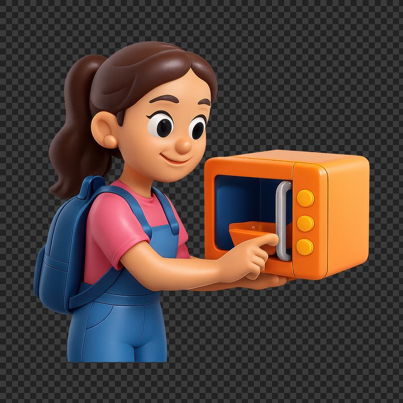 Cartoon girl using microwave safely. https://www.rawpixel.com/image/21165626/cartoon-girl-using-microwave-safelyView license