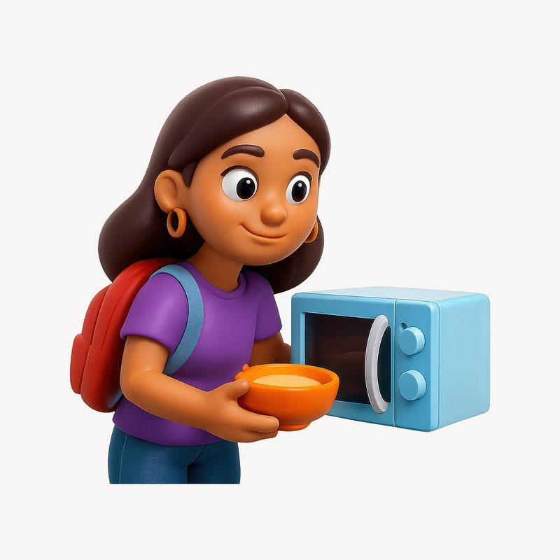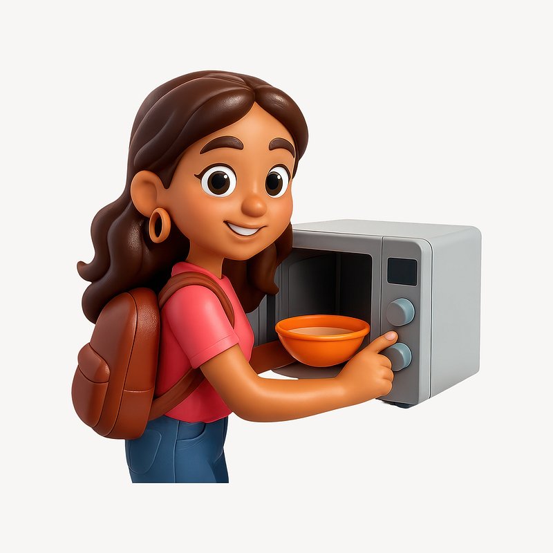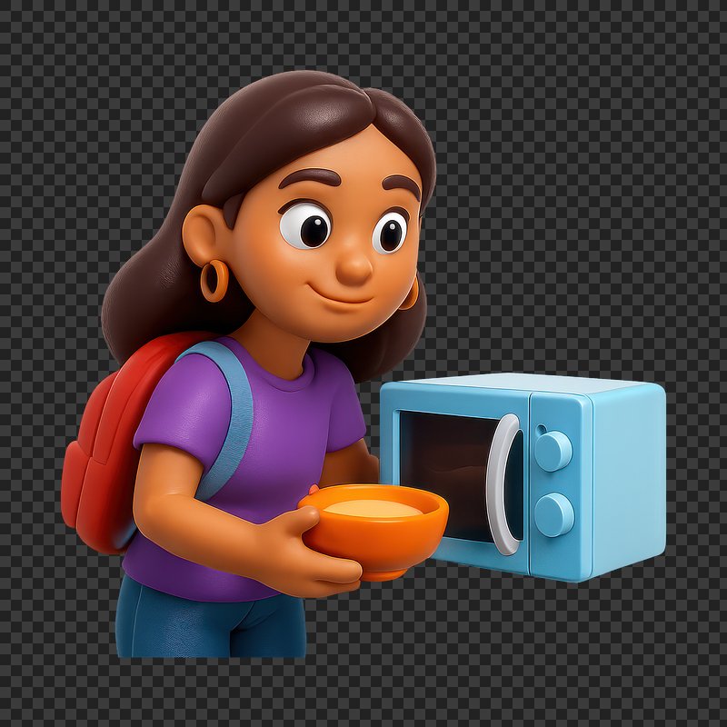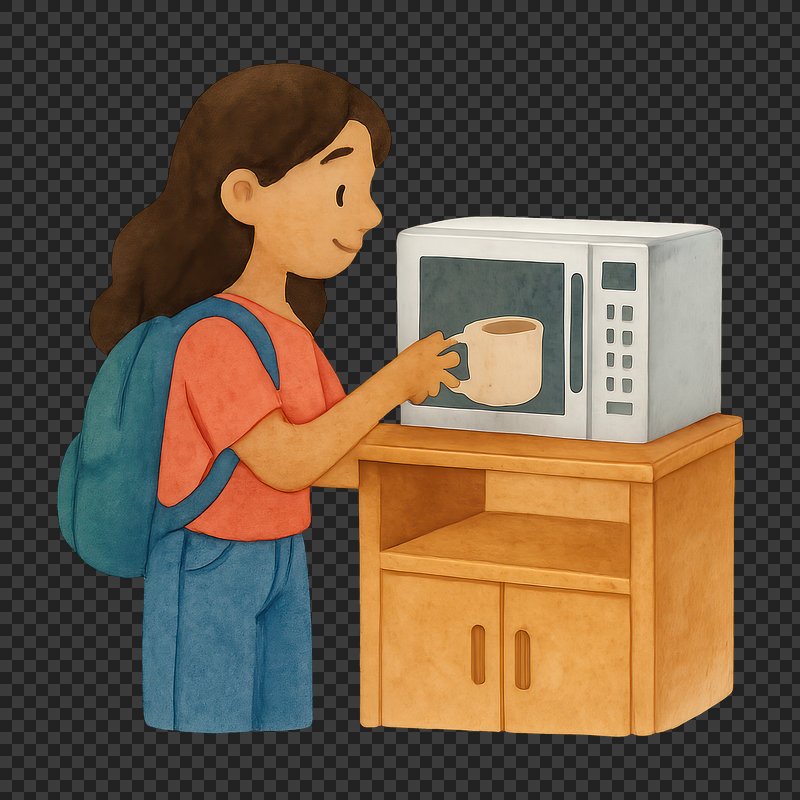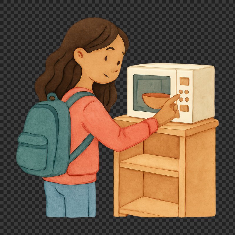 Cartoon girl using microwave safely. https://www.rawpixel.com/image/21165626/cartoon-girl-using-microwave-safelyView license