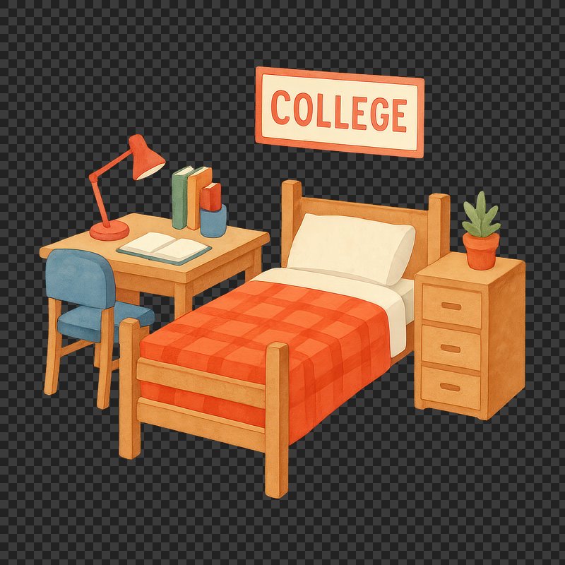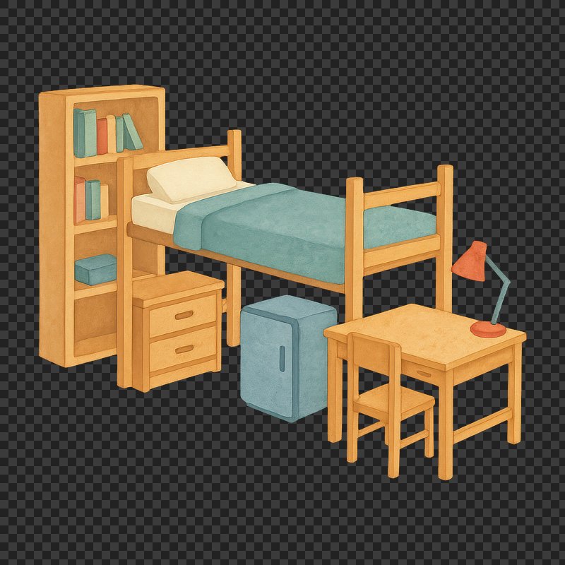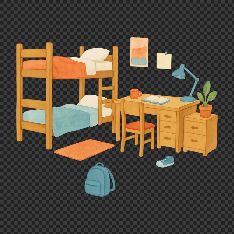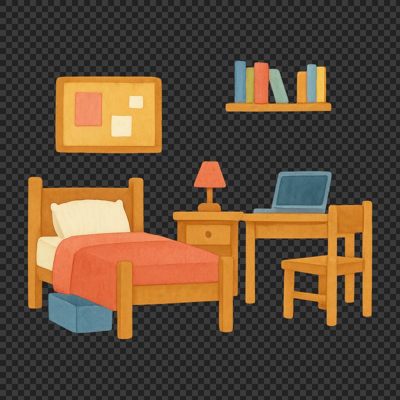 PNG Cozy college dorm room illustration. https://www.rawpixel.com/image/18677674/png-cozy-college-dorm-room-illustrationView license