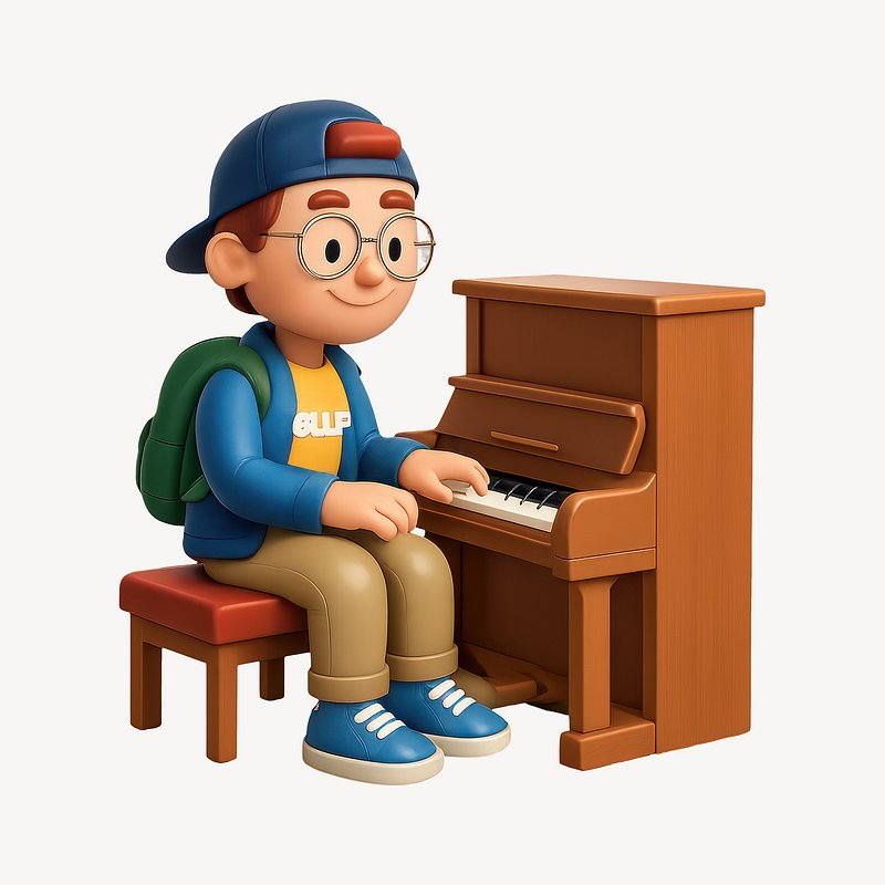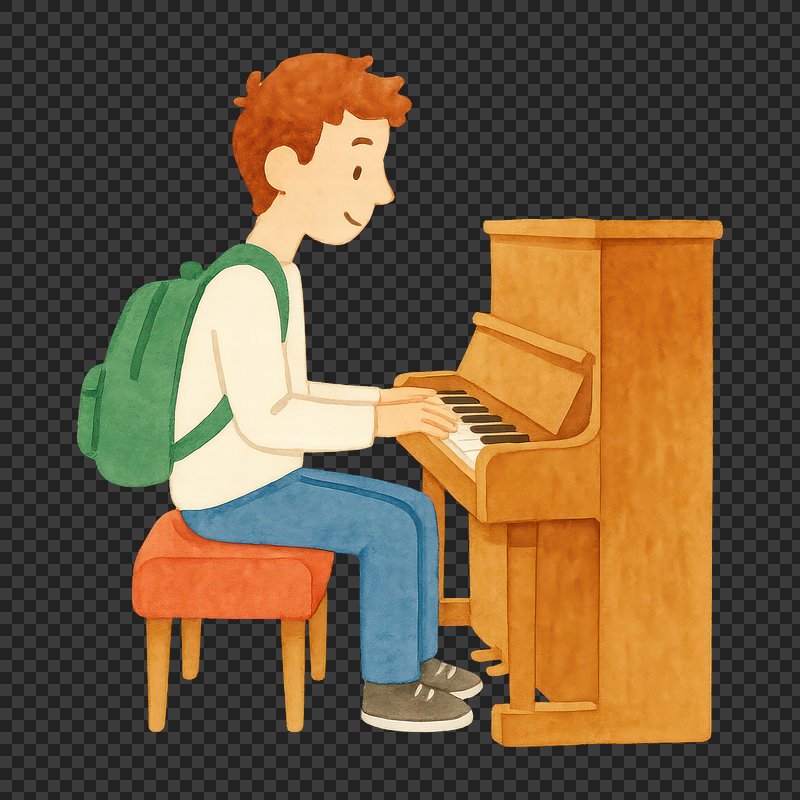 Cartoon boy playing piano joyfully. https://www.rawpixel.com/image/20631137/cartoon-boy-playing-piano-joyfullyView license
