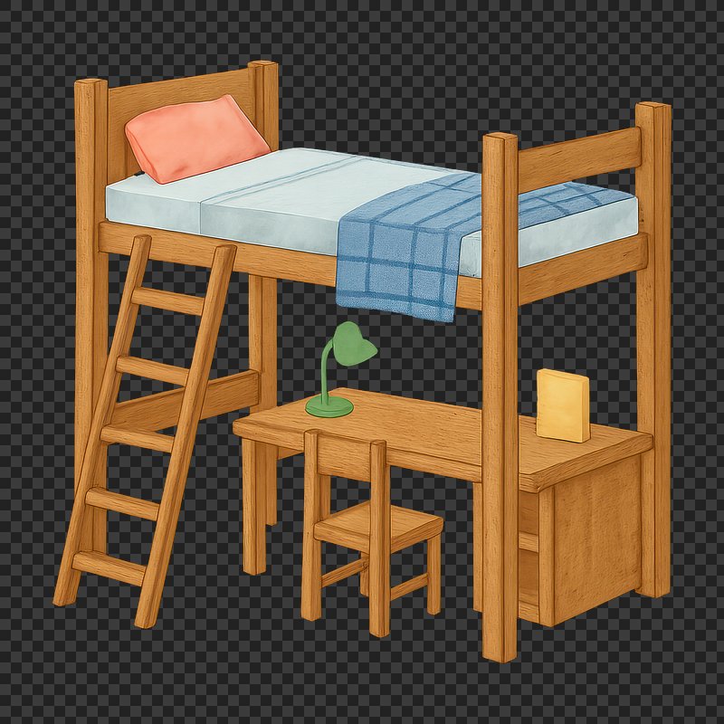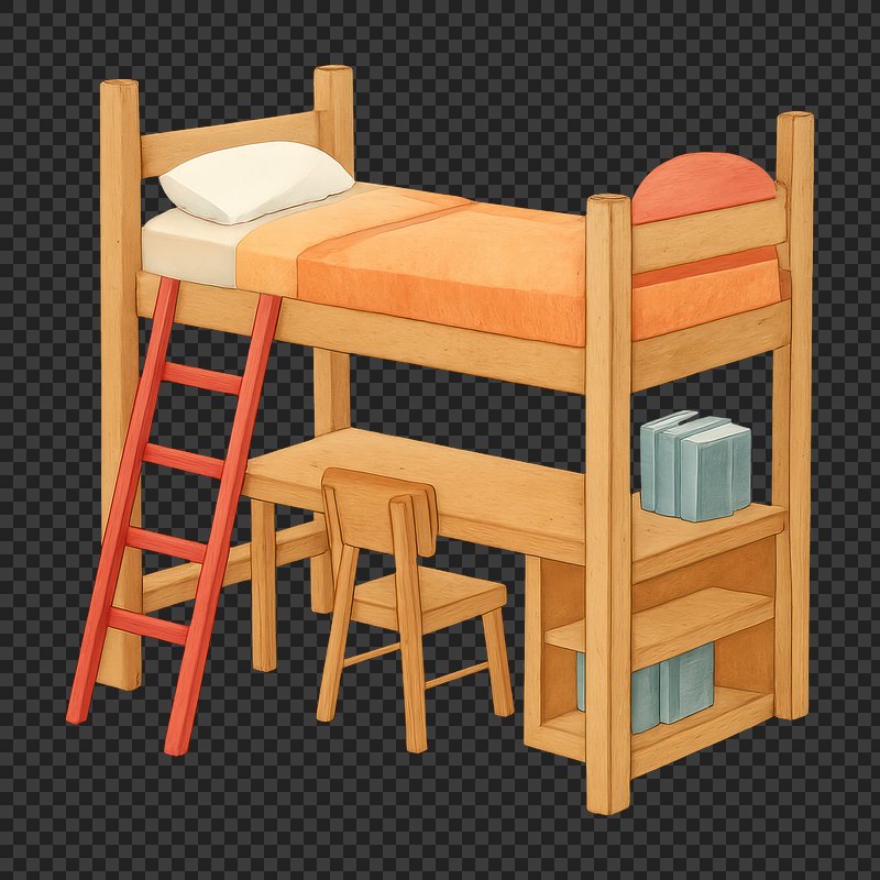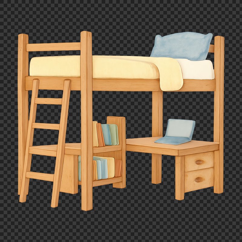 PNG Cozy loft bed study setup. https://www.rawpixel.com/image/18678559/png-cozy-loft-bed-study-setupView license