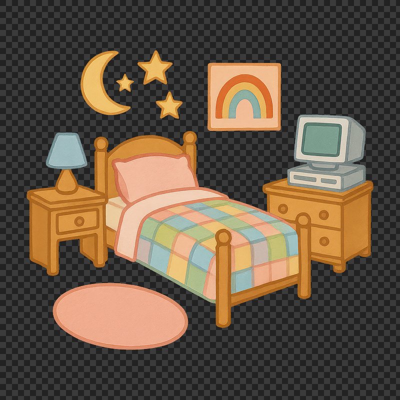 PNG Retro children's bedroom illustration https://www.rawpixel.com/image/18756227/png-retro-childrens-bedroom-illustrationView license