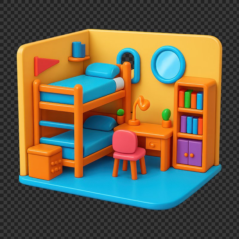 PNG Colorful 3D kids' room illustration. https://www.rawpixel.com/image/20244398/png-colorful-kids-room-illustrationView license
