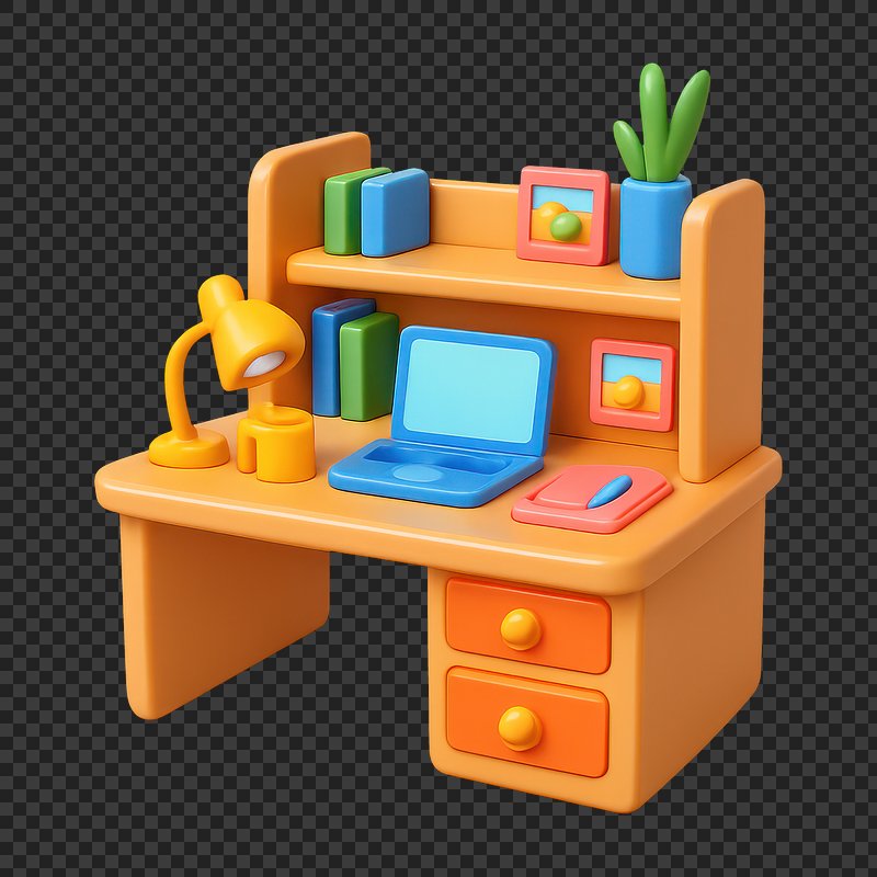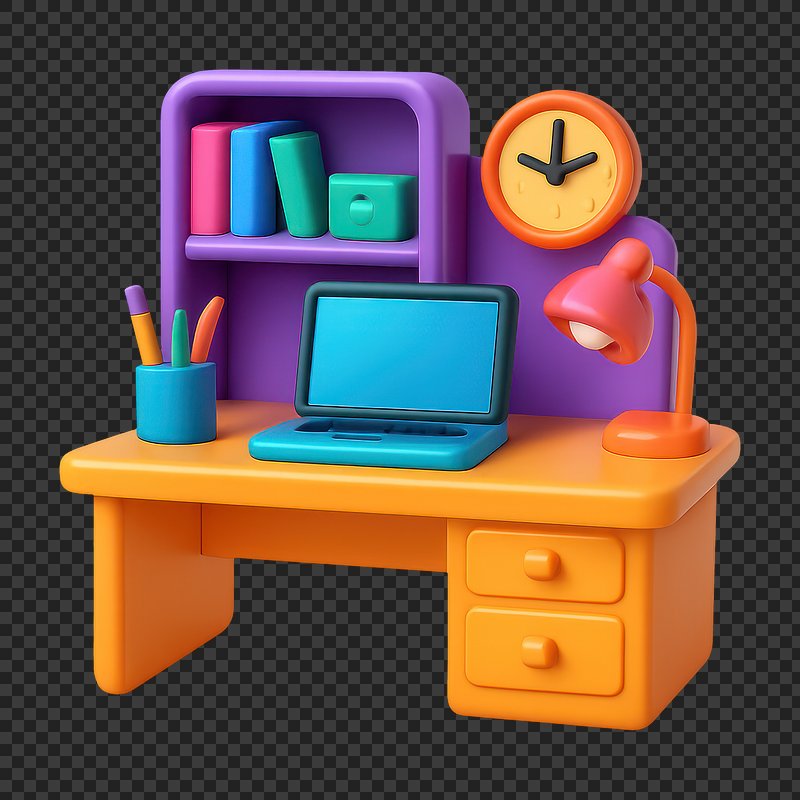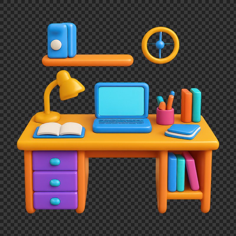 PNG Colorful 3D desk setup illustration. https://www.rawpixel.com/image/20350971/png-colorful-desk-setup-illustrationView license