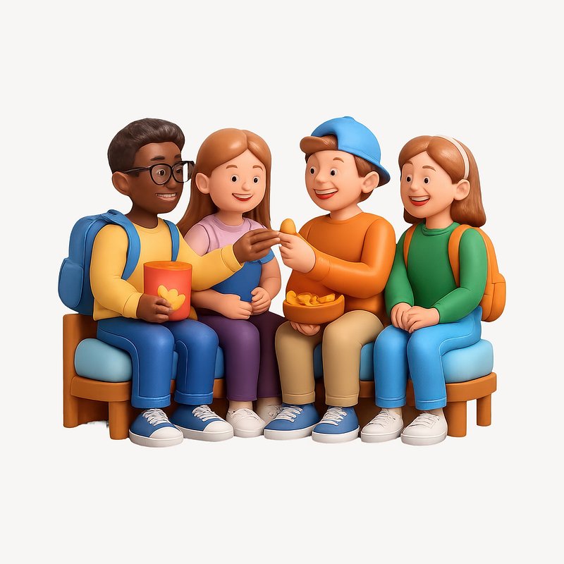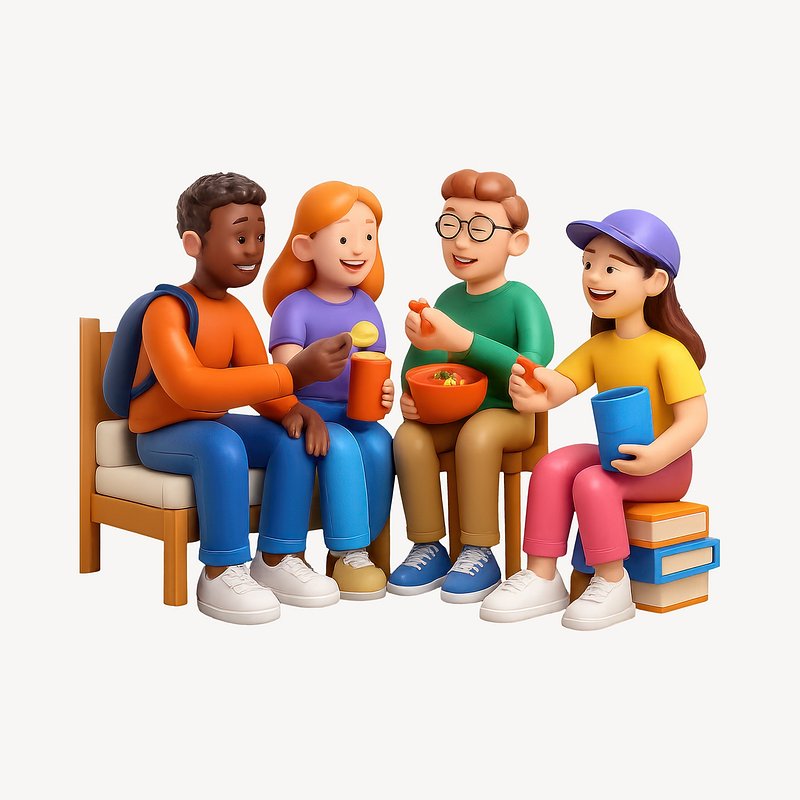 PNG Friends sharing snacks joyfully. https://www.rawpixel.com/image/20356565/png-friends-sharing-snacks-joyfullyView license