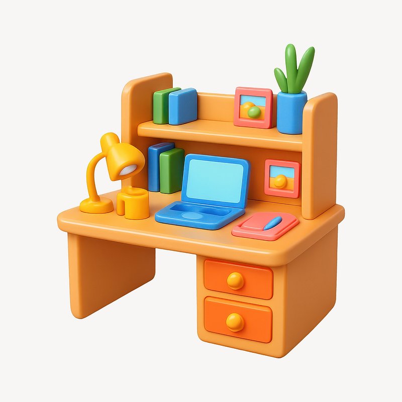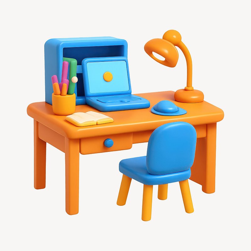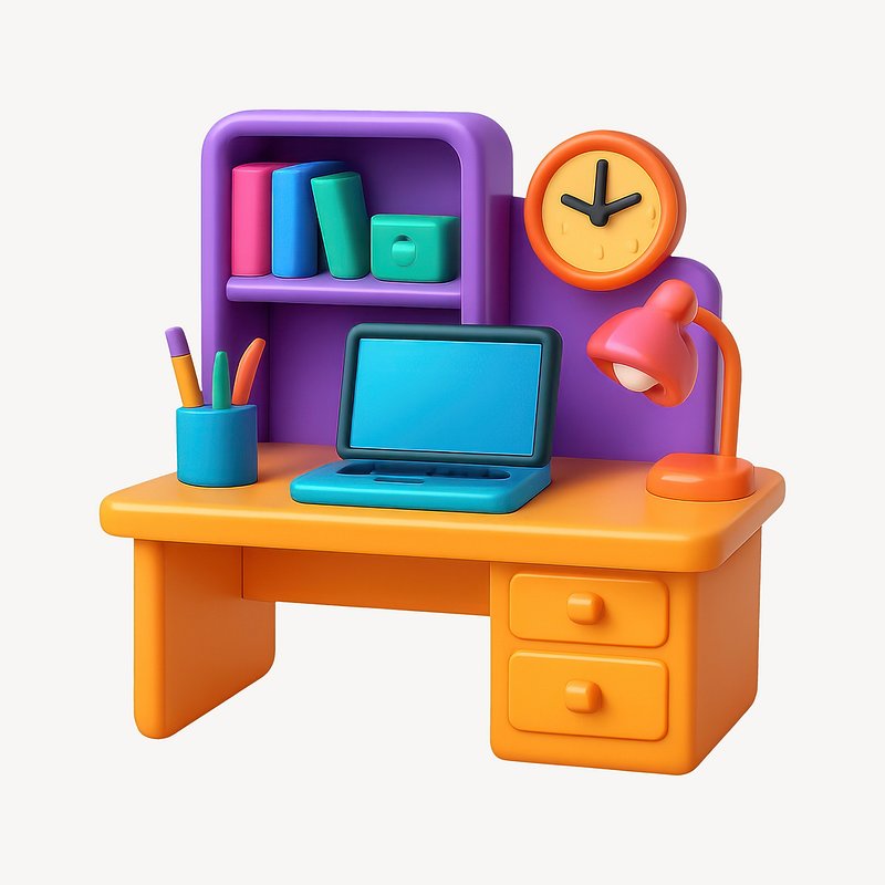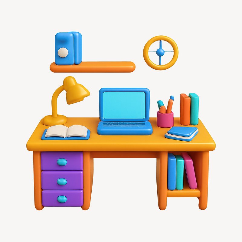 Colorful 3D desk setup illustration. https://www.rawpixel.com/image/21001147/colorful-desk-setup-illustrationView license