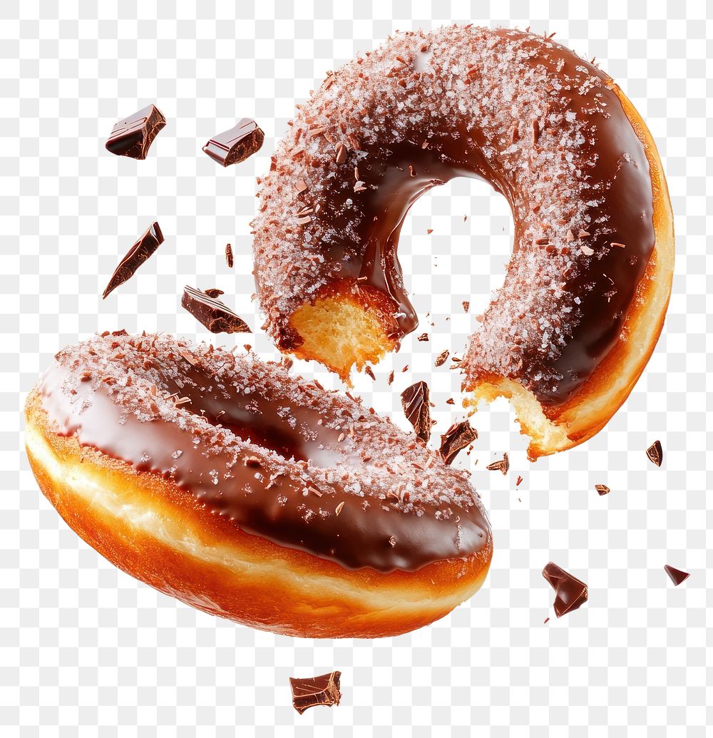 PNG Exploding chocolate donut confectionery sweets pieces. https://www.rawpixel.com/image/15524934/png-exploding-chocolate-donut-confectionery-sweets-piecesView license