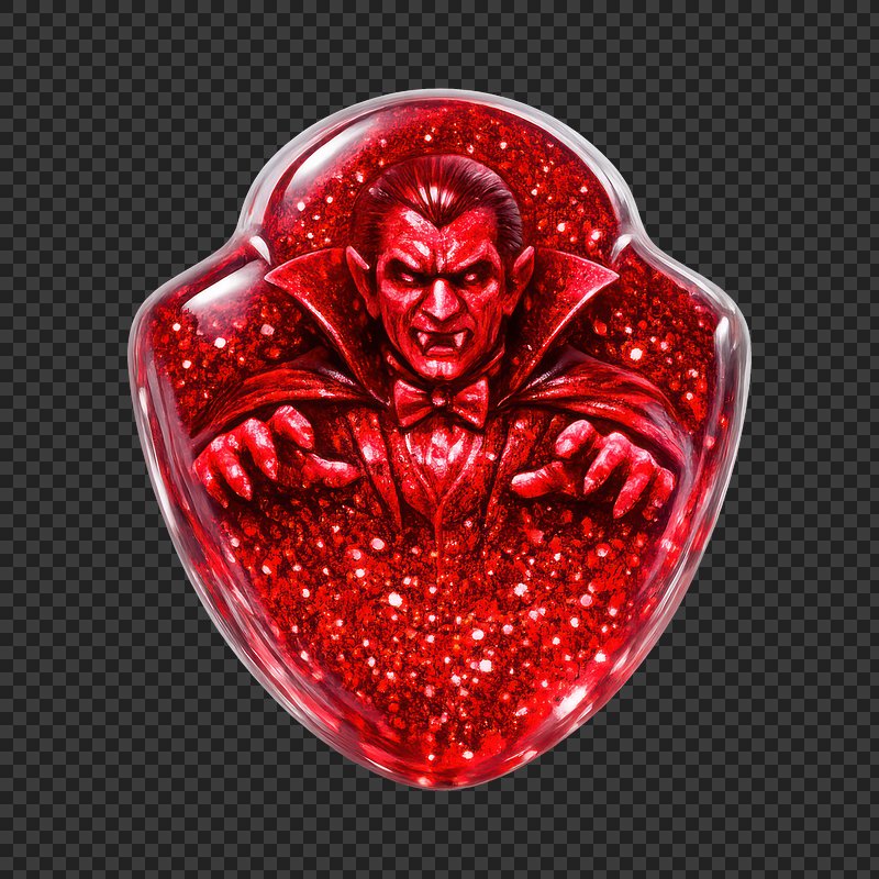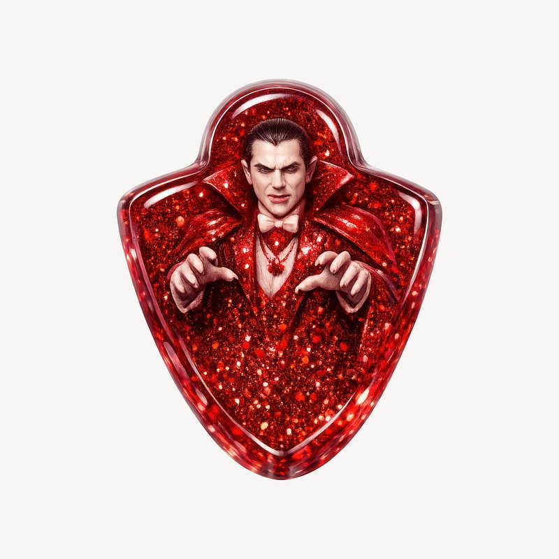 PNG Glittery vampire-themed resin badge. https://www.rawpixel.com/image/25398016/png-glittery-vampire-themed-resin-badgeView license