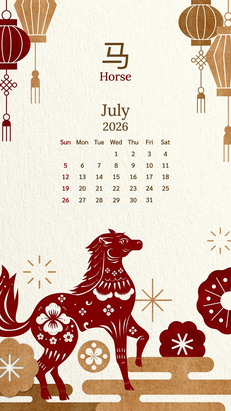 Chinese zodiac 2026 July calendar mobile wallpaper https://www.rawpixel.com/image/24599793/chinese-zodiac-2026-july-calendar-mobile-wallpaperView license