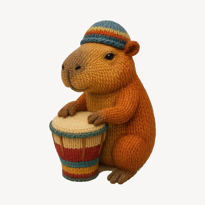 Whimsical knitted capybara drummer https://www.rawpixel.com/image/24530756/whimsical-knitted-capybara-drummerView license