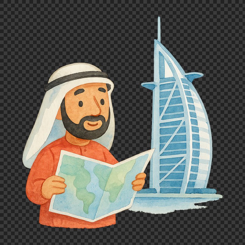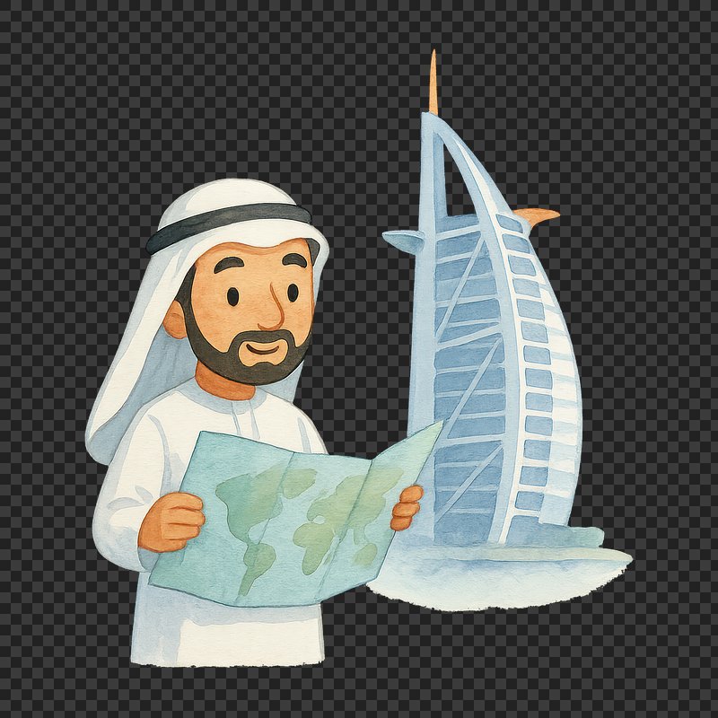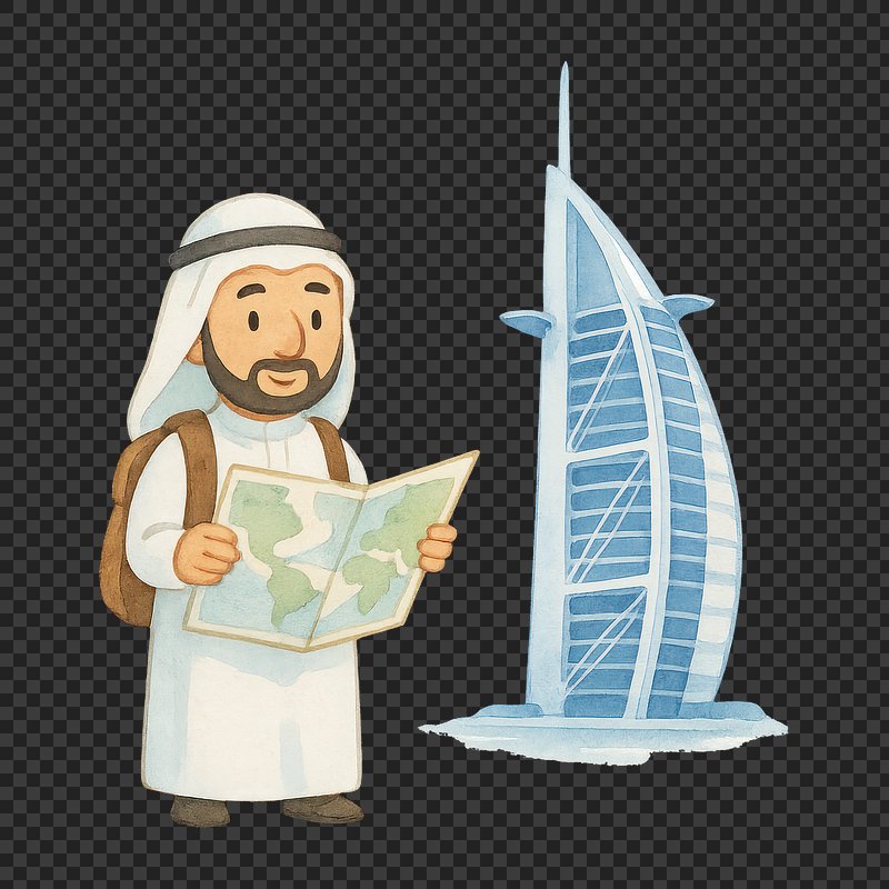 PNG Traveler exploring iconic Dubai landmark. https://www.rawpixel.com/image/19214249/png-traveler-exploring-iconic-dubai-landmarkView license