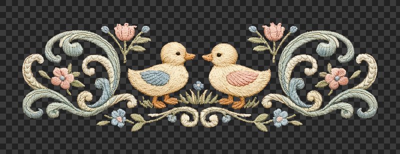 PNG Charming embroidered duckling design. https://www.rawpixel.com/image/25585814/png-charming-embroidered-duckling-designView license