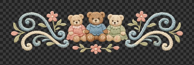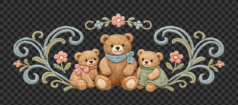 PNG Charming embroidered bear family https://www.rawpixel.com/image/25585420/png-charming-embroidered-bear-familyView license