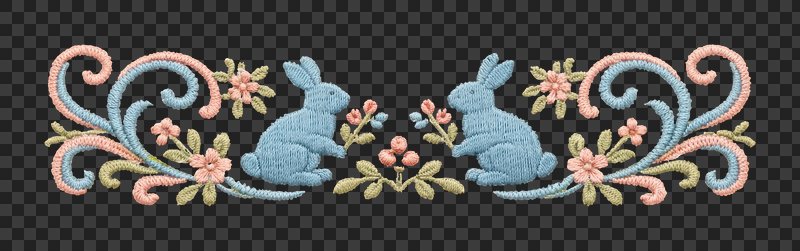 PNG Charming embroidered bunnies with eggs. https://www.rawpixel.com/image/25585333/png-charming-embroidered-bunnies-with-eggsView license
