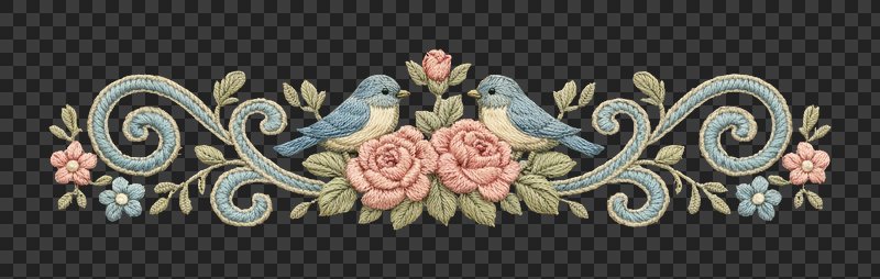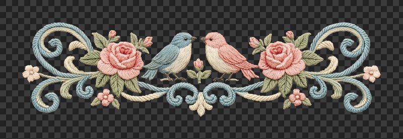 PNG Charming embroidered birds and flowers. https://www.rawpixel.com/image/25585731/png-charming-embroidered-birds-and-flowersView license