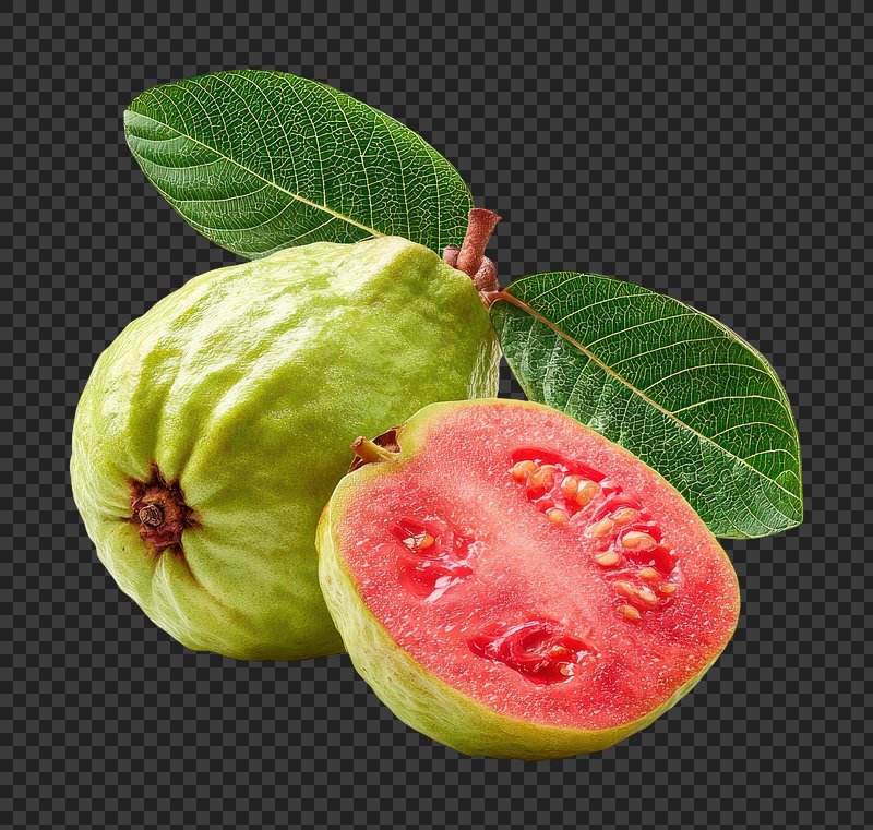 PNG Fresh guava with green leaves. https://www.rawpixel.com/image/25976977/png-fresh-guava-with-green-leavesView license