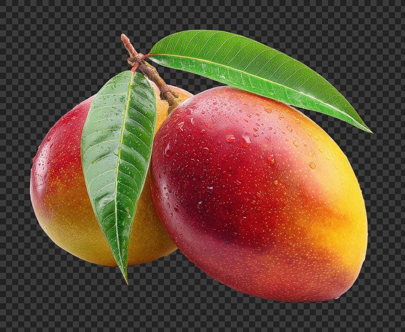 PNG Fresh ripe mangoes with leaves. https://www.rawpixel.com/image/25976999/png-fresh-ripe-mangoes-with-leavesView license
