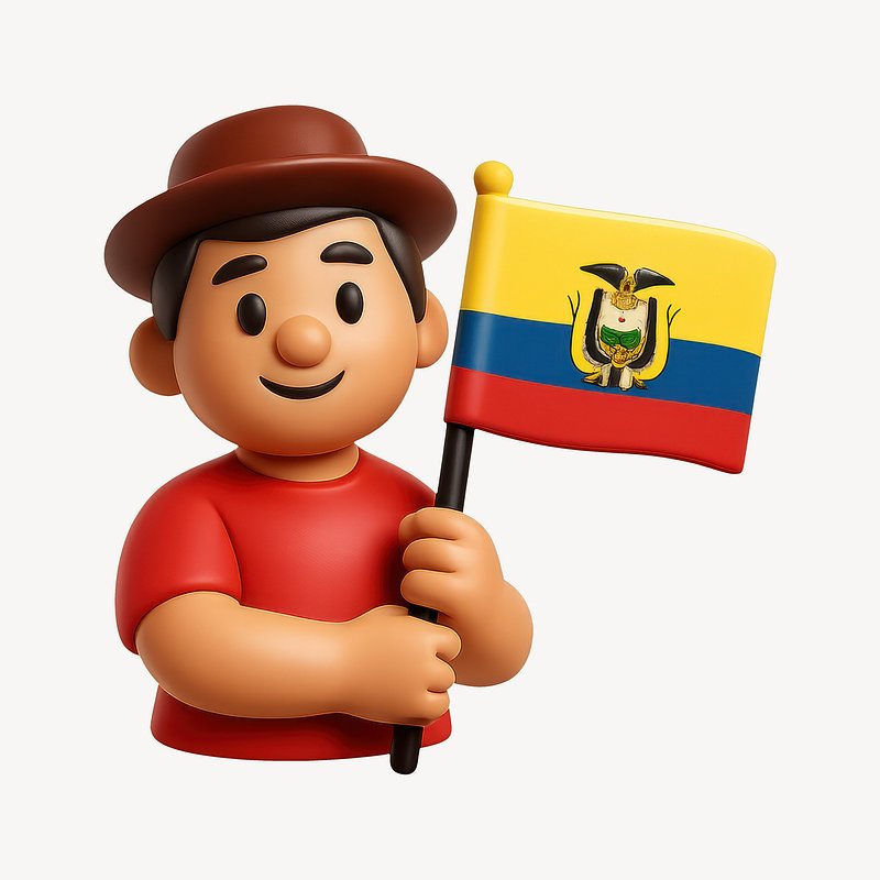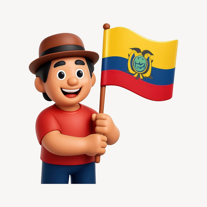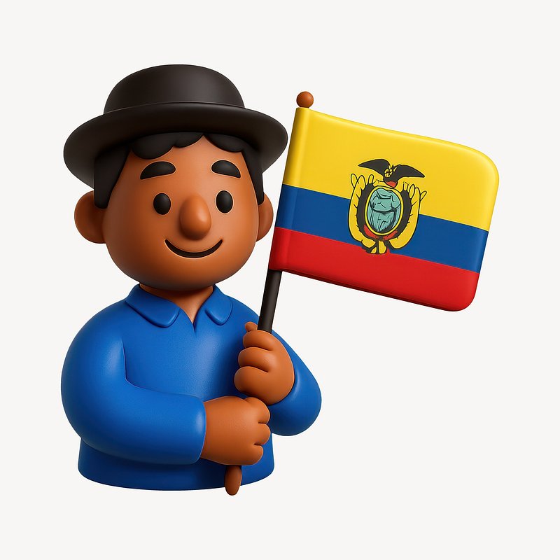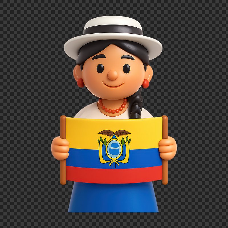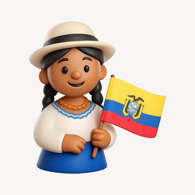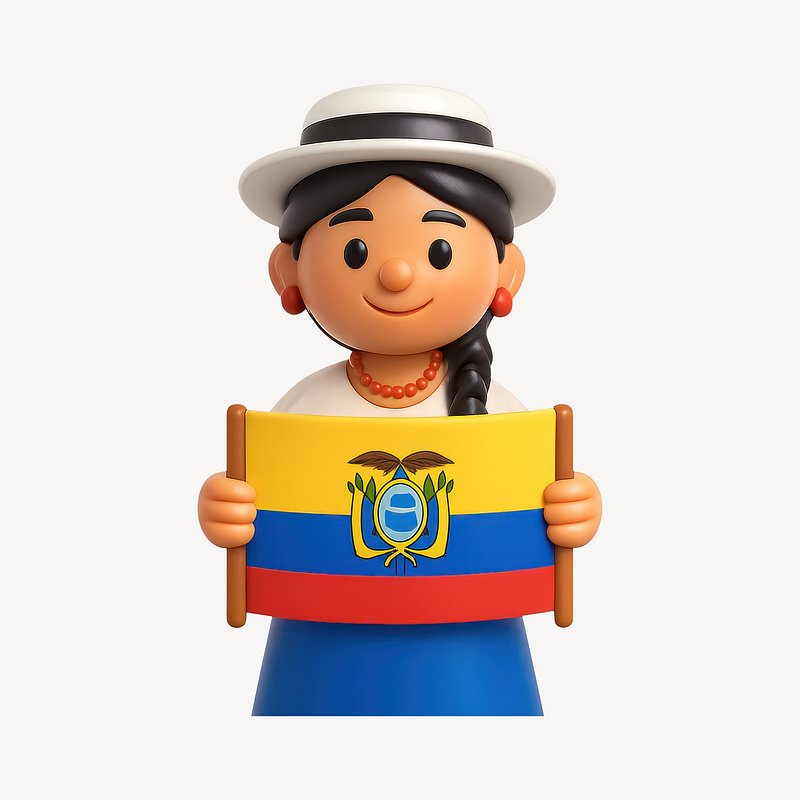 Smiling character holding Ecuador flag. https://www.rawpixel.com/image/20996045/smiling-character-holding-ecuador-flagView license