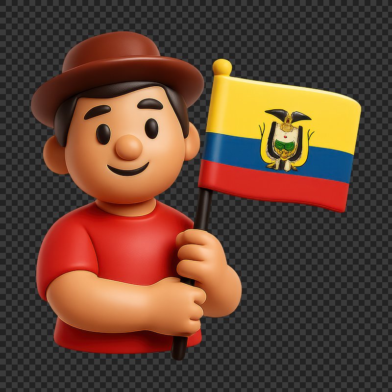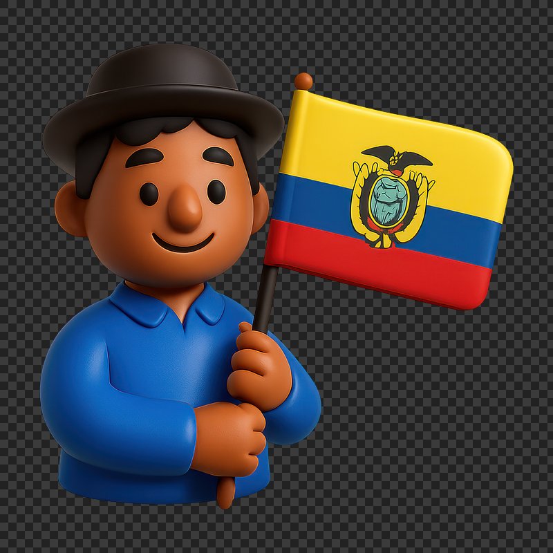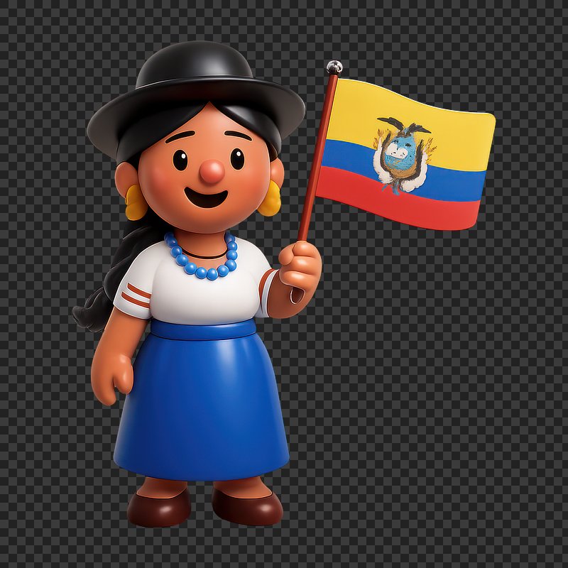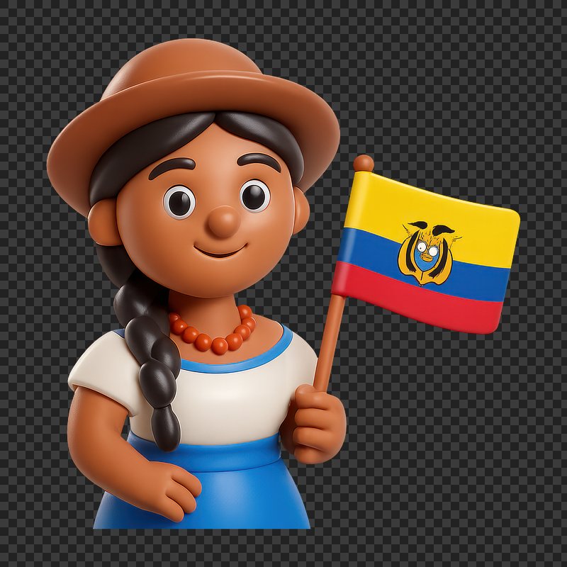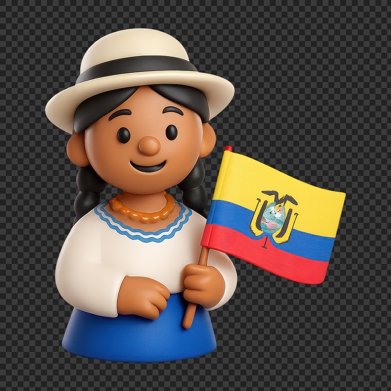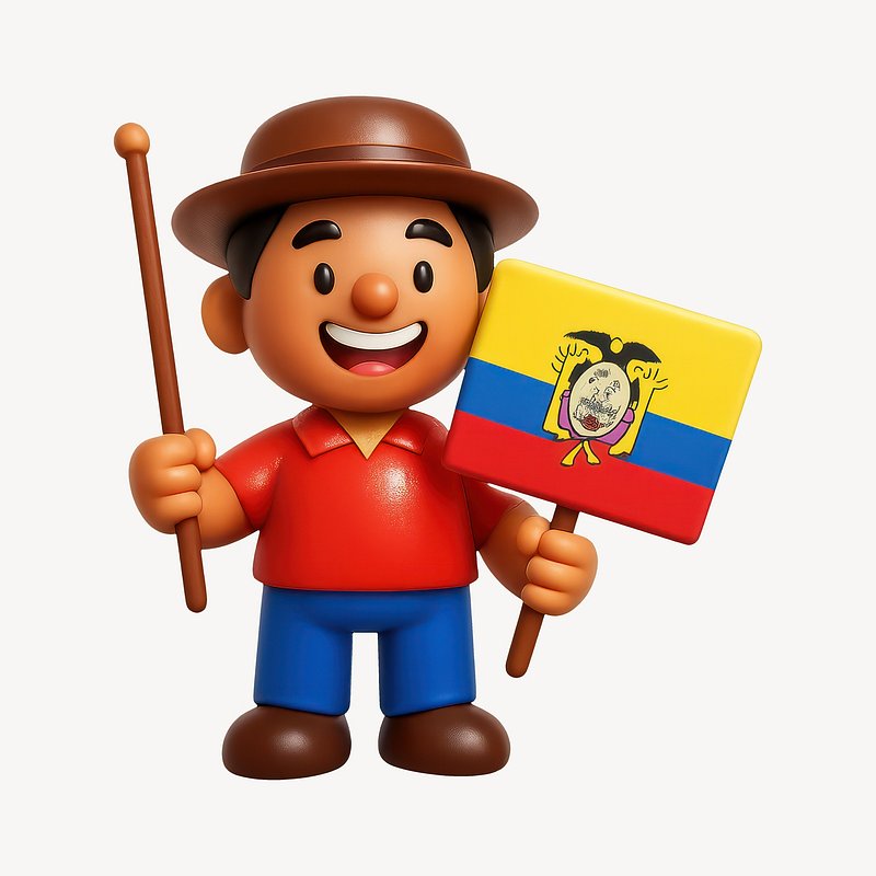 Smiling character holding Ecuador flag. https://www.rawpixel.com/image/20996045/smiling-character-holding-ecuador-flagView license