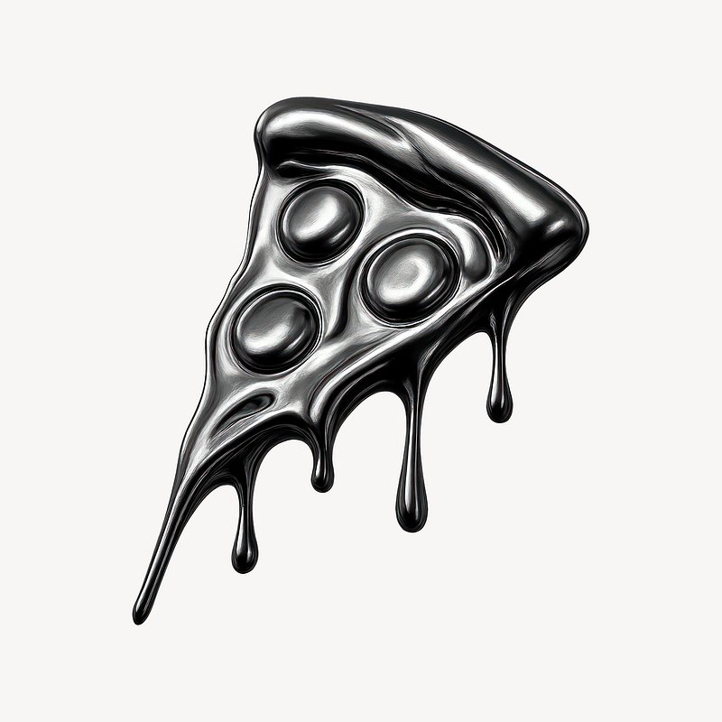 Glossy black dripping pizza slice https://www.rawpixel.com/image/24634085/glossy-black-dripping-pizza-sliceView license