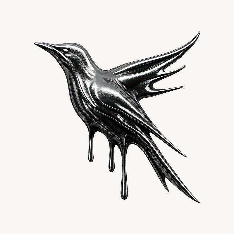 Metallic dripping bird silhouette https://www.rawpixel.com/image/24633130/metallic-dripping-bird-silhouetteView license