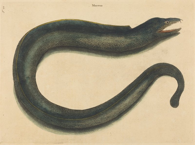 The Muray (Muraena helena) (published 1731-1743) by Mark Catesby https://www.rawpixel.com/image/10017818/the-muray-muraena-helena-published-1731-1743-mark-catesbyFree Image from public domain license