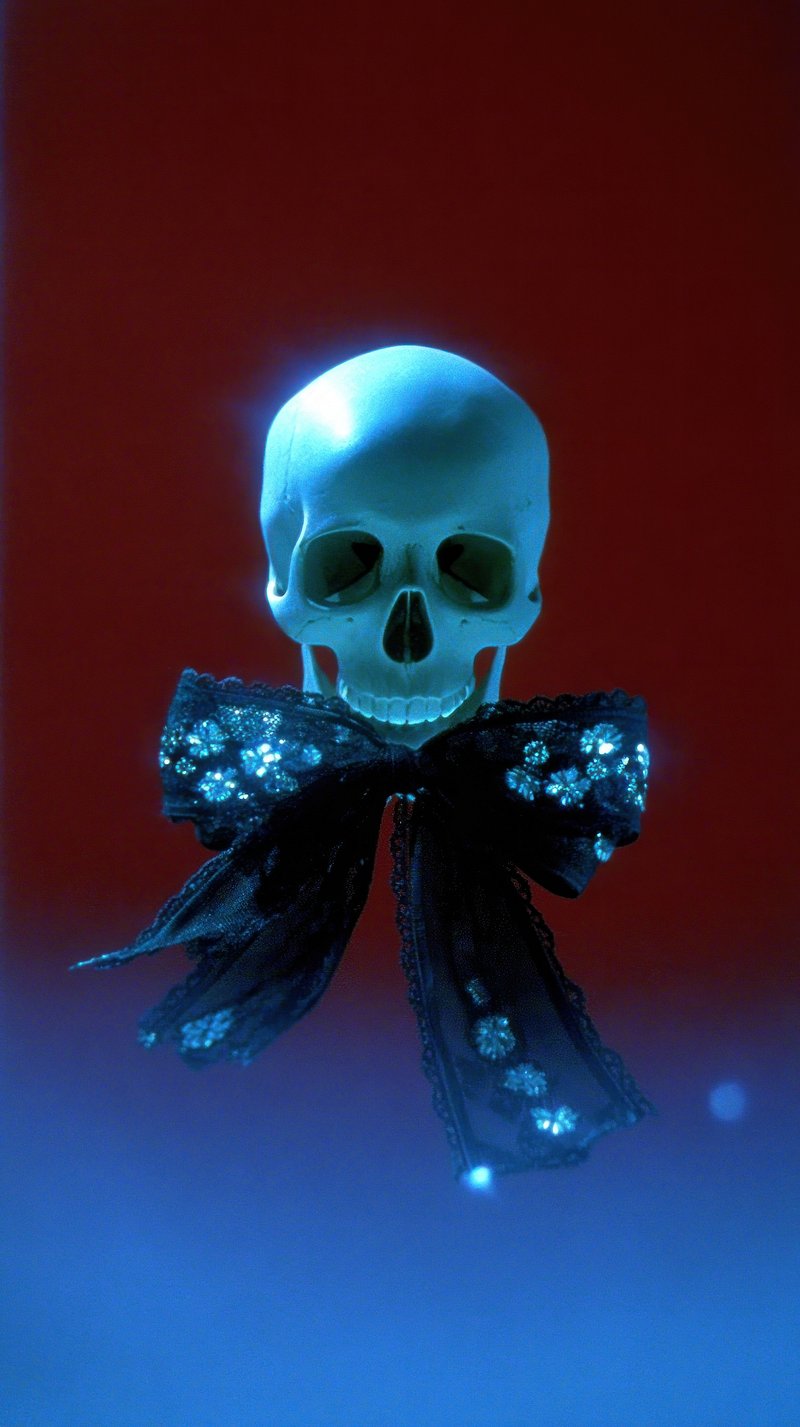 Eerie skull with floral bow https://www.rawpixel.com/image/25180140/eerie-skull-with-floral-bowView license