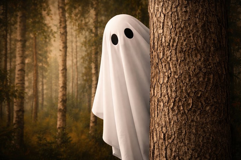 Ghost peeking behind tree https://www.rawpixel.com/image/25322388/ghost-peeking-behind-treeView license