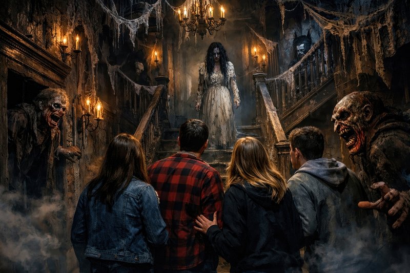Haunted mansion with eerie figures. https://www.rawpixel.com/image/25120426/haunted-mansion-with-eerie-figuresView license