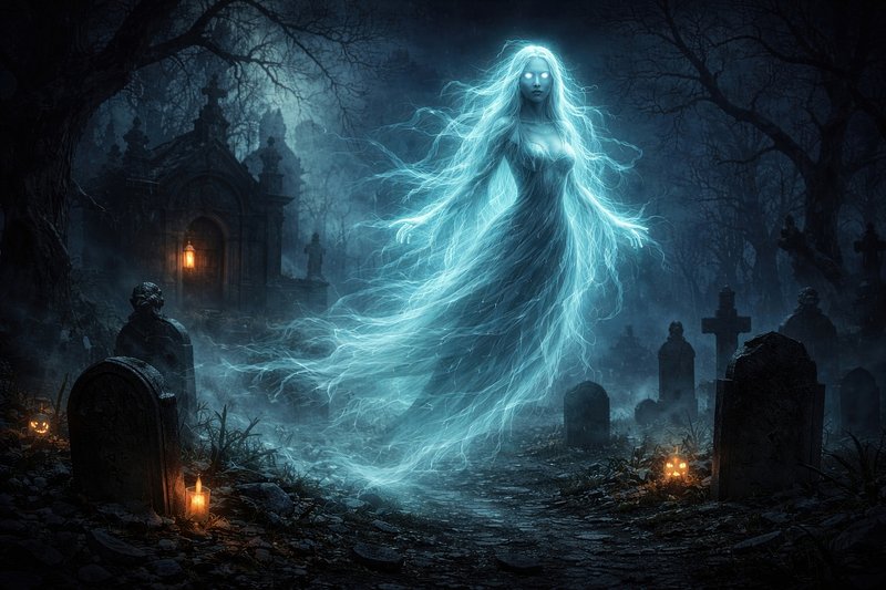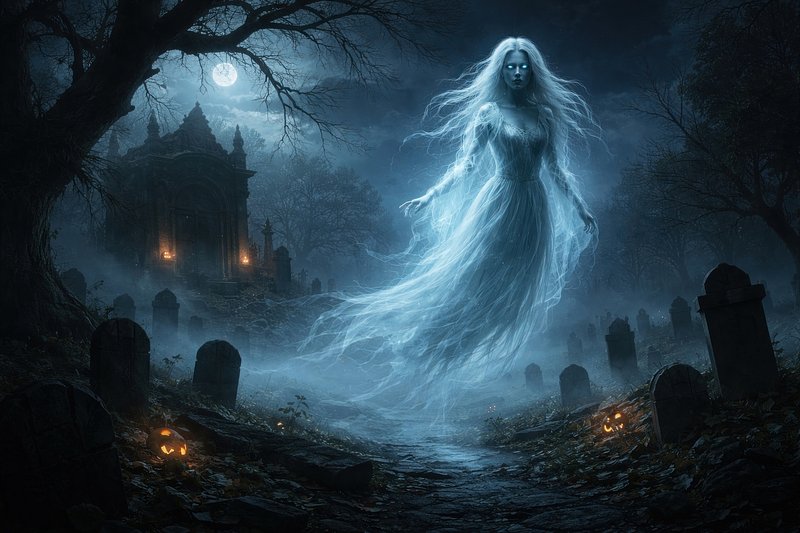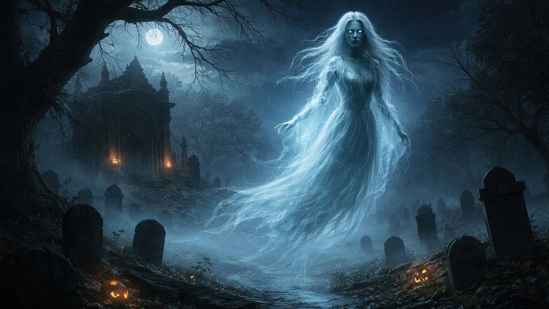 Ethereal ghost haunts moonlit graveyard. https://www.rawpixel.com/image/25119712/ethereal-ghost-haunts-moonlit-graveyardView license