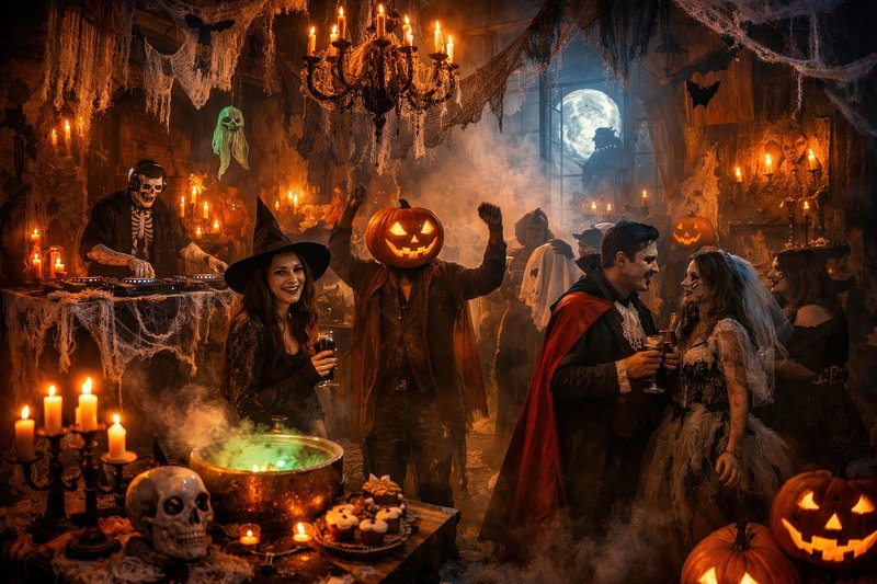 Spooky Halloween party scene. https://www.rawpixel.com/image/25118643/spooky-halloween-party-sceneView license