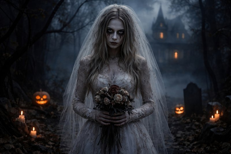 Eerie bride in haunted forest. https://www.rawpixel.com/image/25117308/eerie-bride-haunted-forestView license