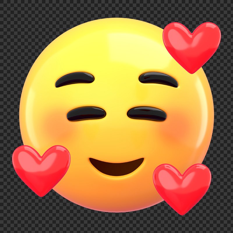 PNG 3D feeling loved emoticon, smiling face with three hearts sticker, transparent background https://www.rawpixel.com/image/8474790/png-sticker-heartView license
