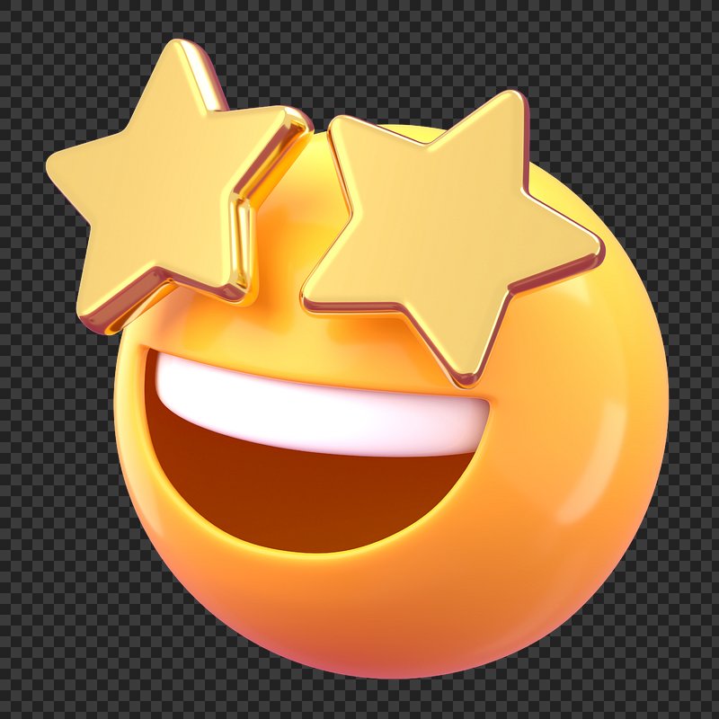 Star eyes 3D png emoticon sticker, transparent background https://www.rawpixel.com/image/8534960/png-face-stickerView license