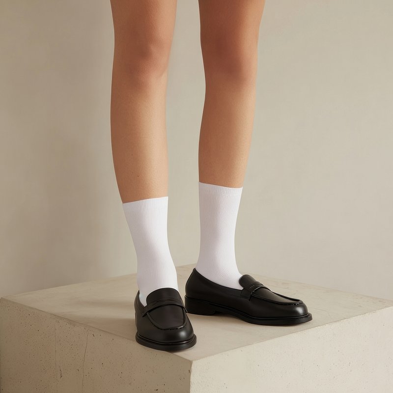 Stylish loafers with white socks. https://www.rawpixel.com/image/25167431/stylish-loafers-with-white-socksView license