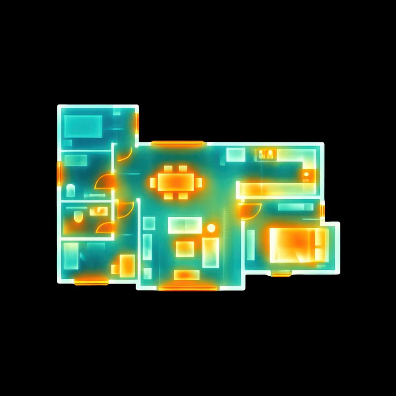 Thermal imaging of building layout. https://www.rawpixel.com/image/25343596/thermal-imaging-building-layoutView license