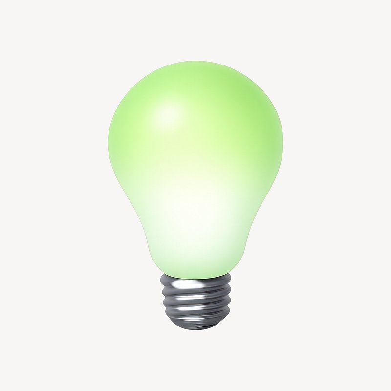 Green light bulb illustration https://www.rawpixel.com/image/25225507/green-light-bulb-illustrationView license