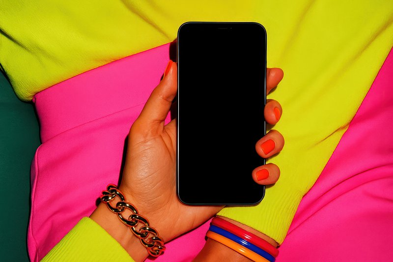 Vibrant fashion with smartphone display. https://www.rawpixel.com/image/24245292/vibrant-fashion-with-smartphone-displayView license