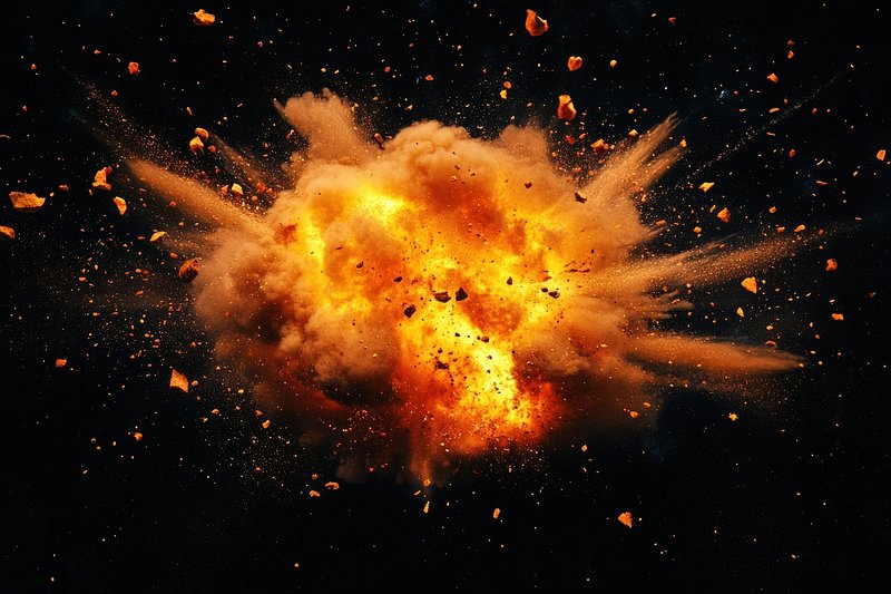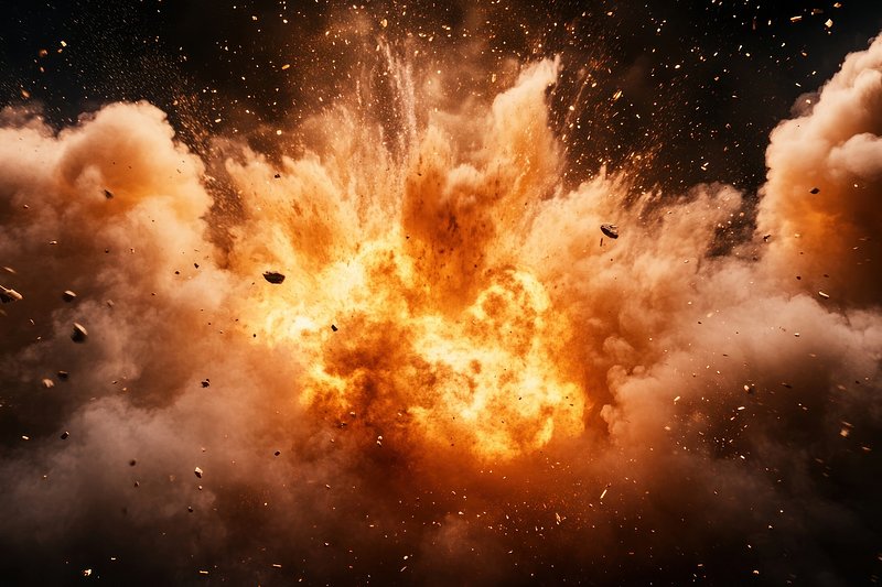 Fiery explosion with debris flying. https://www.rawpixel.com/image/25628186/fiery-explosion-with-debris-flyingView license