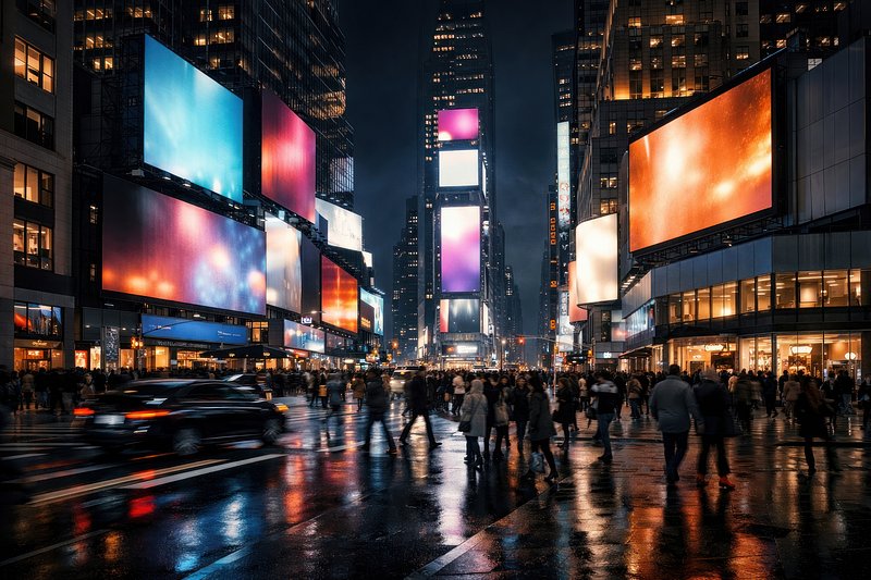 Vibrant cityscape with digital billboards. https://www.rawpixel.com/image/25732776/vibrant-cityscape-with-digital-billboardsView license