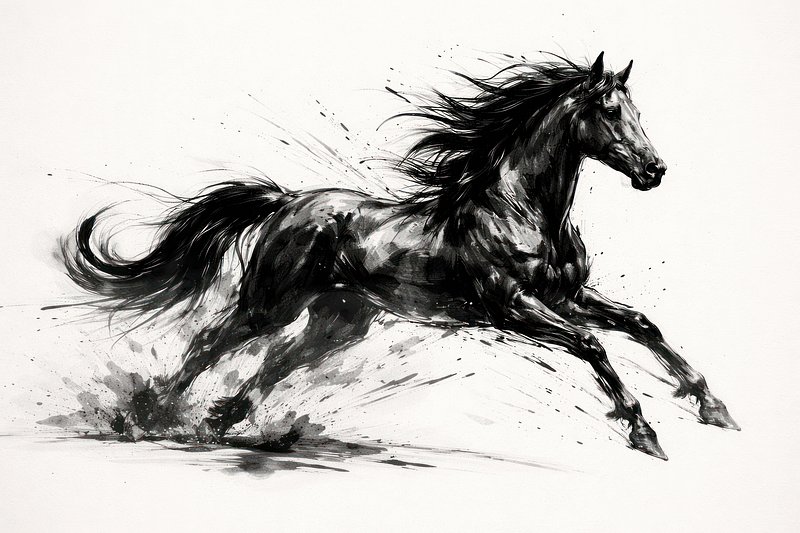 Dynamic black ink horse illustration. https://www.rawpixel.com/image/25687555/dynamic-black-ink-horse-illustrationView license