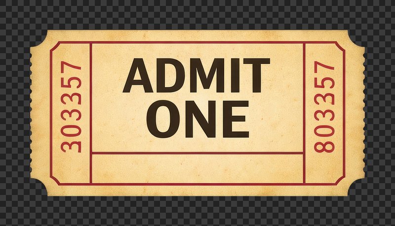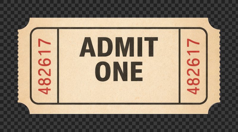 PNG Vintage admit one ticket illustration. https://www.rawpixel.com/image/25862996/png-vintage-admit-one-ticket-illustrationView license