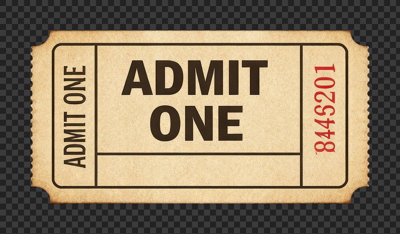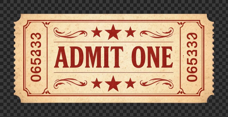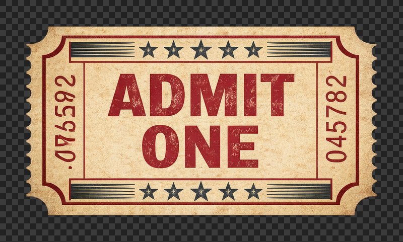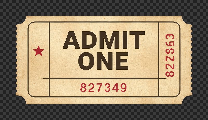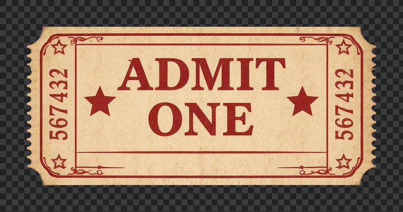 PNG Vintage admit one ticket illustration. https://www.rawpixel.com/image/25867314/png-vintage-admit-one-ticket-illustrationView license
