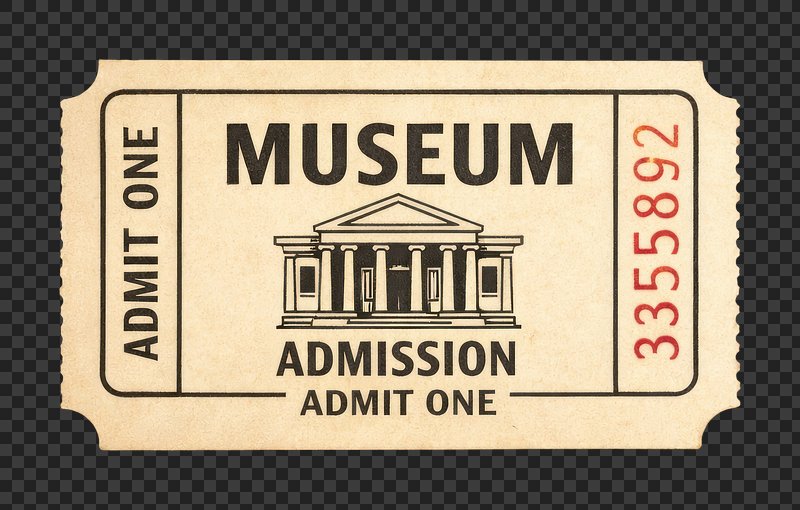 PNG Vintage museum admission ticket illustration. https://www.rawpixel.com/image/25620199/png-vintage-museum-admission-ticket-illustrationView license