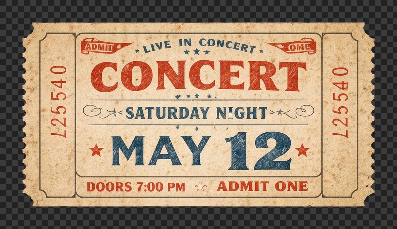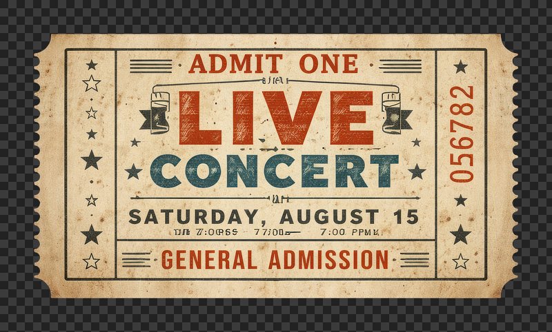 PNG Vintage concert ticket design https://www.rawpixel.com/image/25867754/png-vintage-concert-ticket-designView license