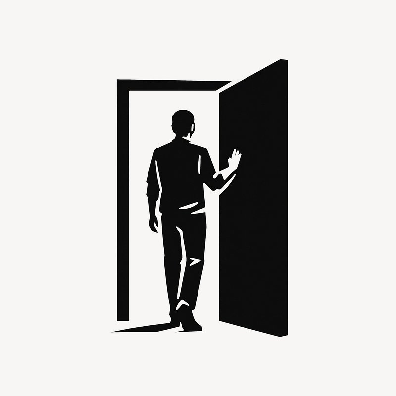 Silhouette entering open doorway. https://www.rawpixel.com/image/25803422/silhouette-entering-open-doorwayView license