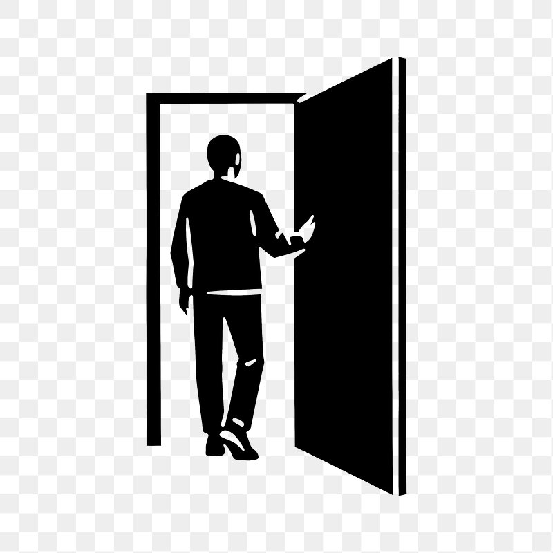 PNG Silhouette entering open doorway. https://www.rawpixel.com/image/25674470/png-silhouette-entering-open-doorwayView license