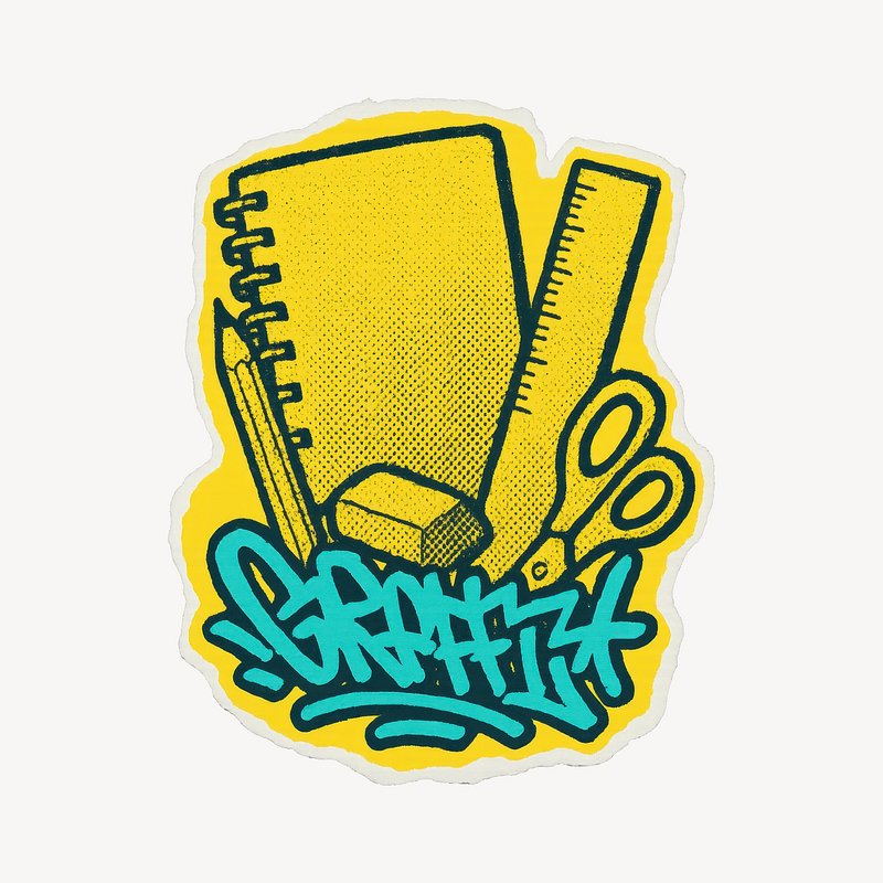 Colorful stationery graffiti sticker https://www.rawpixel.com/image/24654496/colorful-stationery-graffiti-stickerView license